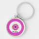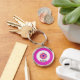 Un frisbee blanc aux motifs rose et bleu sur un arrière - plan rose. Le mot 'frisbee' peut être modifié ou supprimé. Le sport de disque volant ultime.