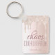 Chaos Coordinateur Chic Girly Parties scintillant Personnalisé Keychains comprend le texte "chaos coordinateur" dans un script élégant sur un chic soft rose parties scintillant drip arrière - plan. Parfait pour cette maman occupée, enseignant, chef d'équipe sportive ou patron de travail. Conçu par ©Evco Studio www.zazzle.com/store/evcostudio