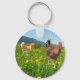 C'est la troisième des trois versions d'un porte - clé coloré qui vous donnera un souffle de la campagne dans votre vie. Il montre un coq jaunâtre s'enfuyant d'une poule qui a tourné les tables sur lui, las de ses avances, dans un pré fleuri du printemps que j'ai repéré en France et dessiné. Un cadeau parfait ou un accessoire.
