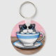 Porte - clé de chat noir fantasque. Cette petite chatte à la recherche d'une nouvelle maison... il commence à surpasser son teacup ! OEuvre originale : acrylique sur papier aquarelle © 2008 Lisa Marie Robinson