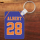 Personnalisé Blue & Orange Basketball Court et Jersey Porte - clé avec nom et numéro personnalisables du joueur. Ce design dynamique allie une disposition audacieuse de terrain de basket à un maillot assorti, parfait pour les joueurs, les fans et les amateurs de sport. Un accessoire unique et élégant pour clés, sacs ou équipement sportif, ce qui en fait un cadeau idéal pour les amateurs de basket !