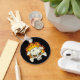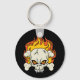 Crâne et os croisés avec des crocs et beaucoup de flammes colorées.
