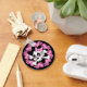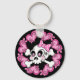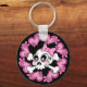 Crâne mignon et arêtes croisées avec arc en pois poli entouré de coeurs et de fleurs roses.
