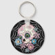 Crâne à sucre Dia de los Muertos (Jour des Morts) aux couleurs pastel avec des fleurs posées sur une toile d'araignée.