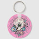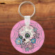 Crâne à sucre Dia de los Muertos (Jour des Morts) aux couleurs pastel avec des fleurs posées sur une toile d'araignée.