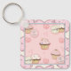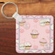 porte - clé carré avec un cadre rose mignon et motif arrière - plan avec des cupcakes et un texte fantaisiste : "La vie est courte. Mange un cupcake !" Remplacez l'arrière - plan par une photo ou votre propre graphique artistique si vous le souhaitez.