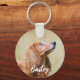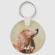 A simple, minimal and modern dog photo and name keychain featuring your dog's photo with their name in a bold script font. Simple to customize by adding your dog's photo and name.