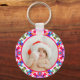 Custom Photo Merry Christmas Modern Colorful Round Key Ring. A festive, jolly and bright Christmas pattern keychain for organizing your keys. Add your own two photos to celebrate family memories. For budget friendly maximalist Christmas home decor keepsake presents. In traditional, warm Christmas colors of red, pink and orange, with winter green and blue. Makes a great, budget friendly gift for family.