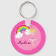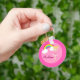 Ce joli cadeau de ballerine personnalisée présente une blonde danseuse de ballet en pointe sous un joli arc-en-ciel sur un cercle rose clair arrière - plan bordé de rose chaud. Un beau cadeau personnalisé pour un enfant qui aime danser sur ballet.