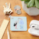 Ce plaisir à sauver la date baby shower porte - clé dispose d'une image graphique d'une mignonne cigogne blanche avec des plumes de queue noire tenant sur un paquet bleu pâle de couvertures. Il y a du texte bleu sur le paquet qui dit "Baby Boy". Ce design est parfait pour célébrer un bébé garçon. Le texte est personnalisable de sorte que vous pouvez inclure le nom de la mère à être sur le devant et la date du baby shower sur le dos.