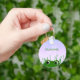 Ce porte - clé fantaisiste pour ceux qui aiment les grenouilles présente une grenouille verte avec de grands yeux qui regarde sur le côté de l'herbe entre les lames de l'herbe à la marge inférieure du design sous un ciel rose et bleu et peut être personnalisée avec son nom et monogramme - par katz_d_zynes