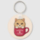 Porte-clés Cute Cat in Coffee Mug Beige Custom Text