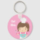 A cute little girl who is wearing a chef hat and apron and using a whisk to mix the ingredients in a bowl that has a heart design. For little girls who love to cook and bake. Personalise with child's name or text like Little Baker or Little Chef.