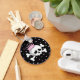 Joli crâne de princesse et des os croisés entourés d'étoiles dans les teintes roses.