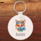 Un porte - clé avec l'illustration d'un adorable portrait de renard avec une couronne et un collier bleu et orange.