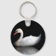 Cygne muet blanc flottant dans un lac avec réflexion dans l'eau contre arrière - plan noir. Clé basse.
