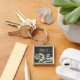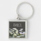 Modern, stylish personalized keychain with sunny daisies on dark gray background.