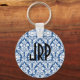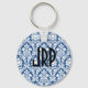 Porte - clé damassé bleu monogramme.