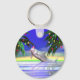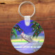 Image de vacances tropicales en 3d avec un joli dauphin célébrant Noël en portant un casquette rouge et en tenant un sucre de canne entre les palmiers décorés.