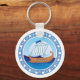 Porte-clés de Grèce avec une conception d'un navire grec antique. Cette conception présente un navire de la Grèce antique et le motif de lignes grecques dans un design circulaire avec la mer et le ciel. Ce porte-clés est le cadeau idéal, un souvenir ou à utiliser lors de votre voyage en Grèce.