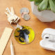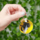L'image macroscopique d'un bourdon avec du pollen sur la tête, sur une fleur de tournesol jaune, se trouve sur cette porte-clés.