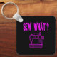 Bague porte-clé porte - clé imprimé avec Sew What ? phrase de texte créative point d'interrogation et dessin graphique de la machine à coudre par TheFabricSeal impression sur demande shop à Zazzle.com #ZazzleMade https://www.zazzle.com/store/thefabricseal TheFabricSeal ©️ Original. Ce design ludique et neutre pour les hommes est un cadeau idéal pour tous les âges et les niveaux de couture et de textile amateurs. Combinant un jeu de mots humoristique et sarcastique, une phrase qui se joue sur mot, et un dessin à l'allure cool d'une machine à coudre de style moderne. Le jeu de palette de couleurs présenté dans le design et les couleurs arrière - plans sont le noir, le rose chaud, le fuchsia et le violet. Cette conception est au format PNG et peut avoir n'importe quel choix de couleur arrière - plan que vous souhaitez. Les belles couleurs colorées de l'arc-en-ciel et au-delà de la section de customise de produit Zazzle que j'ai utilisée sont pour montrer quelques exemples de différentes idées de variation de couleur. Commandez aujourd'hui . Merci. Tous les produits et dessins d'art de notre magasin peuvent être customisés avec le texte de votre choix si vous avez besoin et souhaitez faire avancer les processus de personnalisation. Merci pour le choix, la recherche et le shopping à TheFabricSeal.