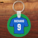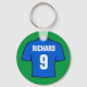 Cadeau pour un fan de football. Bague à clé avec chemise de football en bleu. Personnalisez avec votre choix de nom et de numéro.