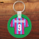 Cadeau pour un fan de football. Bague à clé avec chemise de football en clarette et bleu. Personnalisez avec votre choix de nom et de numéro.