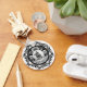 Graphisme abstrait style tatouage en encre tirant l'influence hongroise, avec le roi Arpad et un cheval au centre et regarder l'oeil au sommet avec masques de drame sur le côté et silhouettes de palmier autour de la frontière