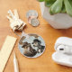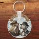 Description emportez un peu de mystère partout où vous allez avec Benjamin et le porte-clés rond bouton mettant en vedette le duo de détectives les plus pointus de la ville, un bouledogue historique et un dalmatien élégant et une tenue formelle vintage. Ce porte-clés est posé sur un fond bleu à motif élégant.