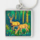 Porte - clé dans une illustration de deux cerfs, un buck et un doe, dans une forêt luxuriante et verte
