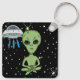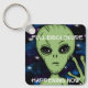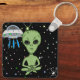 Alien agitant avec un arrière - plan étoilé avec UFO pour ceux qui s'intéressent à UFOlogy.