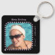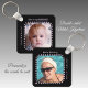Porte - clé double face, idée cadeau de clé. Remplacez les deux photos / avant et arrière et ajoutez un nom. Arrière - plan noir, texte violet avec coeur d'amour.