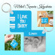 Porte - clé double face, idée cadeau de bague clé. Remplacez la photo au dos et le nom. Un filtre noir et blanc a été utilisé, ce qui changera automatiquement votre photo couleur. Je t'aime papa. Ciel bleu et blanc.
