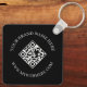 Promote your brand with this double sided QR code and custom text black keychain. Designed with a clean modern style for professional business branding. Add a scannable QR code on one side and your custom text or logo on the other. Perfect for marketing giveaways, networking events, and small business promotional accessories.