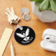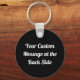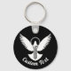 Volant colombe avec une simple icône de clé. Couleur arrière - plan personnalisée. Texte personnalisé des deux côtés.