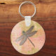 Joli porte - clé dispose de rose/vert arrière - plan d'aquarelle en détresse avec le look métallique dragonfly