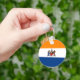 Porte - clé avec le drapeau d'Albany, New York. Un drapeau orange, blanc et bleu avec l'emblème de la ville au centre