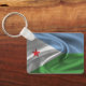 Porte-clés avec le drapeau de Djibouti dans un design de tissu ondulé. Ce design présente les couleurs et le design du drapeau djiboutien avec un effet de texture de matériau ondulant magnifique. Ce design de drapeau est un excellent moyen de montrer que vous êtes fier de venir de Djibouti.