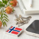 Le drapeau de la Norvège est rouge avec une croix scandinave de bleu d'indigo décrite dans le blanc qui se prolonge aux bords du drapeau ; la partie verticale de la croix est décalée au côté de grue dans le style du Dannebrog, le drapeau du Danemark.