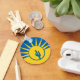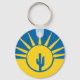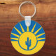Bouton Porte - clé avec drapeau de la ville Mesa, Arizona; drapeau jaune et bleu avec illustrations stylisées du désert, cactus et soleil levant