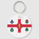 Porte - clé avec le drapeau de Montréal, la ville la plus peuplée de la province de Québec, Canada. Drapeau blanc avec croix rouge, pin blanc, fleur de lys bleu, rose rouge de Lancaster, shamrock et chardon