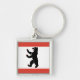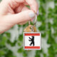 Porte - clé carré avec drapeau de Berlin, drapeau d'état avec bandes horizontales de rouge et blanc, avec une illustration d'un ours noir au centre