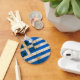 Le drapeau de la Grèce est fait pour paraître vieux et robuste. Des textures rugueuses recouvrent le drapeau donnant à ce porte - clé une sensation grincheuse. Ce drapeau grec dallé est une façon amusante et élégante de montrer son patriotisme.