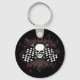 Jolly course crâne et os croisés avec à damiers drapeaux sur splatter.