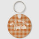 Funny rustique porte - clé de pays dispose d'un texte blanc "Attendez jusqu'à ce que vous rencontriez ma famille" et d'un arrière - plan vintage à damiers
