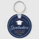 Ce chic porte - clé de fin d'études en bleu marine et or coutume présente une typographie blanche classe sous un nom de lycée ou de collège pour la classe de 2023. Customisez avec votre année de graduation sous l'élégante calligraphie pour un grand cadeau porte - clé diplômé personnalisé.