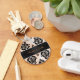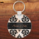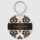 Elegant black and satin looking peach damask design key chain, with a stripe in the middle to personalize with your names. Lovely little gift idea for bride's maids or for the bride.