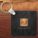 Luxury monogrammed double sided keychain in black leather look (printed) with a faux gold copper metallic square. ++++++++++++++ Easy to personalize with your personal or business monogram initials and name. +++++++++++++ Could be an elegant personalized gift for business corporate openings, housewarming, birthday, Christmas, or any other occasion.