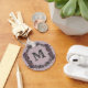 Un design élégant en violet et argent encadre un monogramme personnalisable.